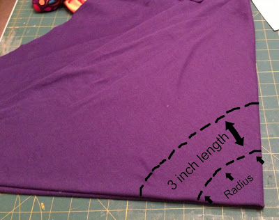 5. For the 2T/3T size, I chose 3 inches as the length for each layer. It was roughly an arbitrary number that would leave about 2.5 inches per finished layer, using a 1/4 inch seam allowance. Here is a chart I created for the lengths of sizes (you will use the strip length layer further down in the instructions):